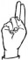 На ћирилици написано ЕВГЕНИЈЕ ВИДОЈЕВИЋ састоји се из 17 слова [?]. Исписано ћириличном једноручном азбуком за глувонеме: